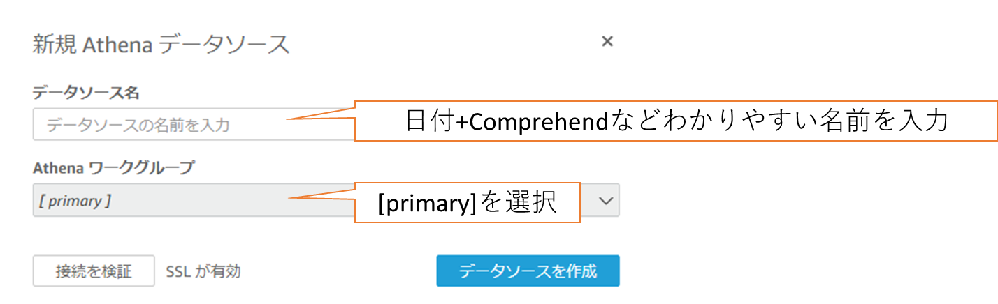 | データベース名 | 日付+Comprehendなどわかりやすい名前を入力しましょう。 |