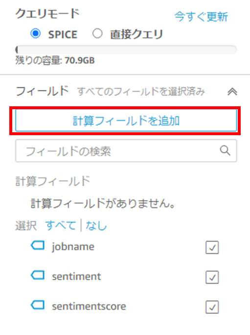 列の追加をクリック後、列名にてJobname、Sentiment、Sentimentscoreを追加します。