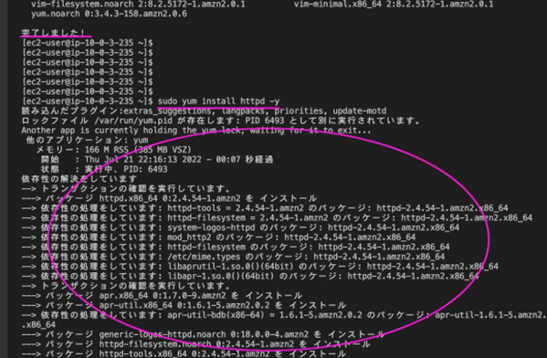 2.Apacheのインストールをするため、下記のコマンドを実行