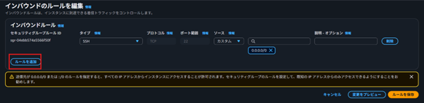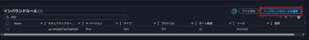 ここでは、構築したWebサーバーが外部から閲覧できるように、セキュリティグループにHTTPのアクセスルールを追加します。