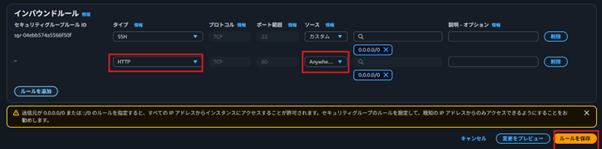 4.タイプ「HTTP」、ソース「Anywhere-IPv4」を選択し、「ルールを保存」をクリック