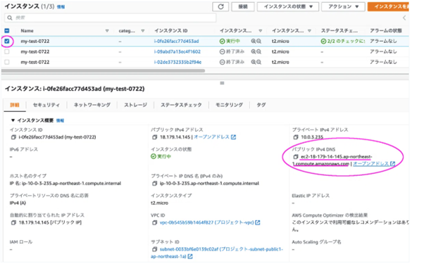 1.インスタンスのパブリックDNS「オープンアドレス」をクリック
