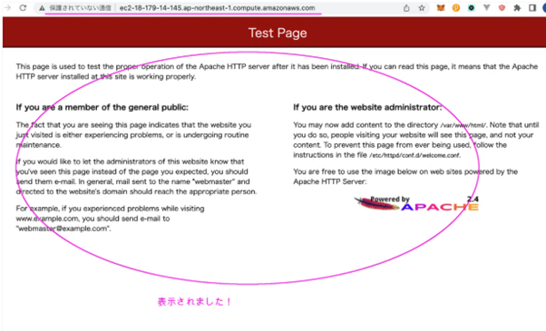 ここでは、構築した Web サーバーが外部から正しく閲覧できるかをテストします。